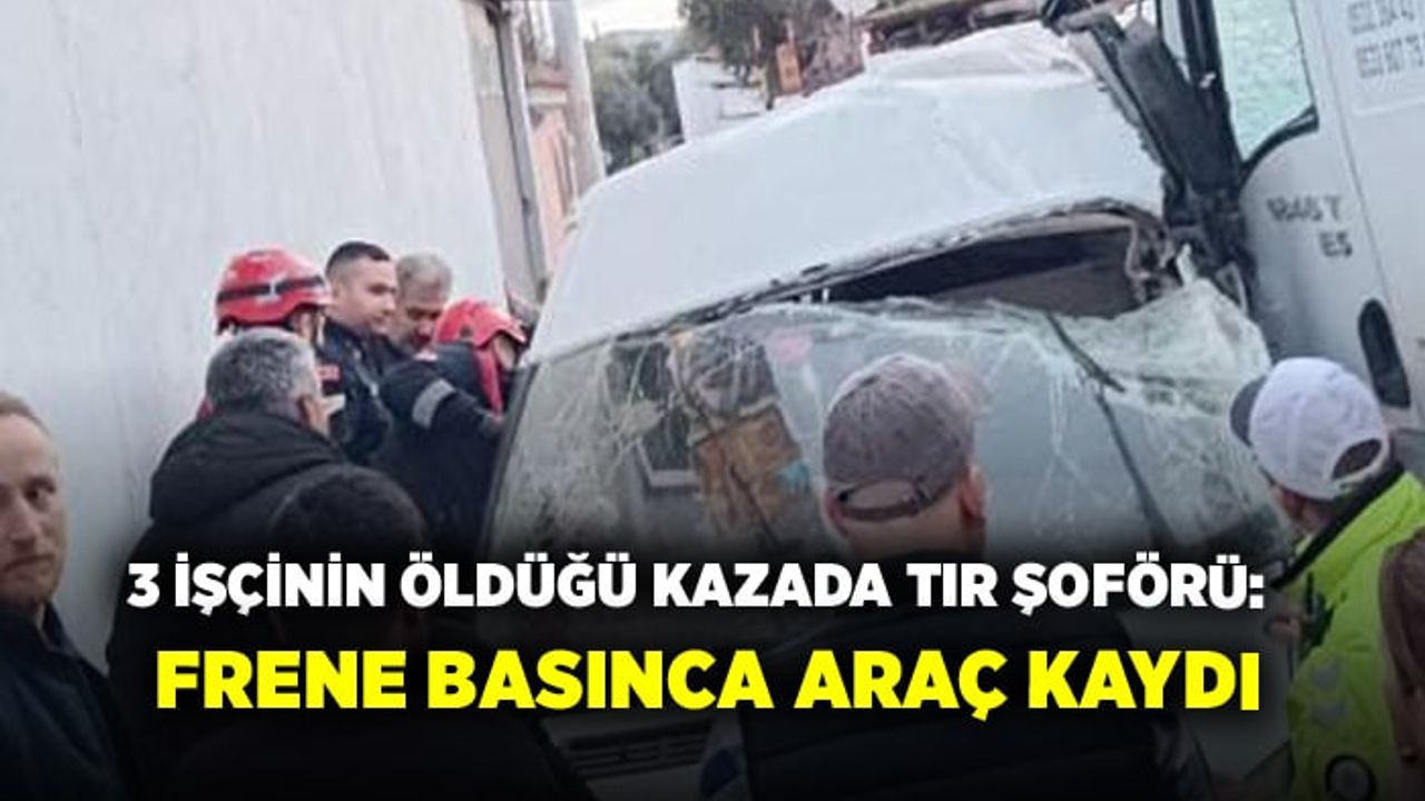 Yaralılar, hastanelere kaldırılırken, gözaltına alınan TIR şoförünün jandarmadaki ifadesi ortaya çıktı. C.T. ifadesinde, "Yükümü indirip, evime gidiyordum. Yağmur yağıyordu. Hızımı azaltmak amacıyla frene basınca araç kaydı. Kaygan zeminde direksiyon hakimiyetimi yitirdim. Kaza bir anda oldu" dedi. C.T'.nin jandarmadaki işlemlerinin sürdüğü bildirildi.