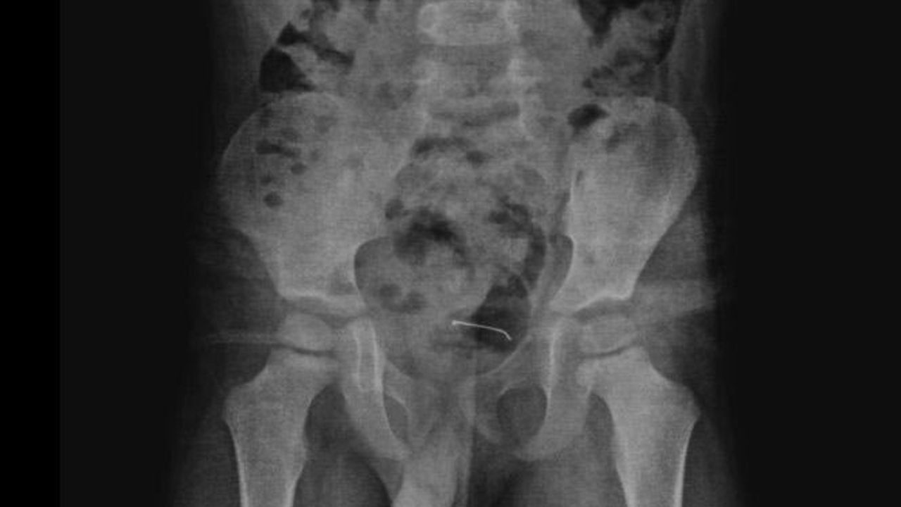 Güroymak'ta sürekli karın ağrısı şikayeti çeken 5 yaşındaki çocuk, ailesi tarafından çeşitli sağlık kuruluşlarına götürüldü. Sonuç alamayan aile, en son Tatvan Devlet Hastanesi'ne başvurdu. Burada çekilen röntgende, çocuğun mesane duvarında metal bir cisim olduğu belirlendi. 9 ay önce yutulan ve vücutta kalan 3 santimetrelik toplu iğnenin mesane duvarına yapıştığı tespit edilince ameliyata karar verildi.