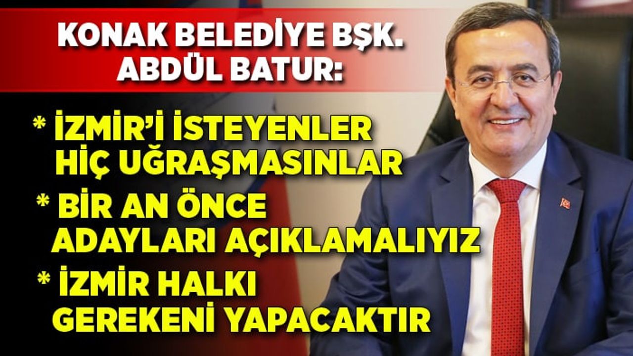 Batur, "İzmir halkı, Ulu Önder Mustafa Kemal Atatürk'e olan duyarlılığını hiçbir zaman kaybetmez. Dizi gibi CHP'yi takip ediyorlar. Biz belediye başkanları olarak başarılı hizmetler yapıyoruz. Böyle bir algı yaratarak İzmir'i eline geçirme konusunda çalışma yapanlara sesleneyim, hiç uğraşmasınlar. İzmir halkı gerekeni yapacaktır." şeklinde ifade etti.