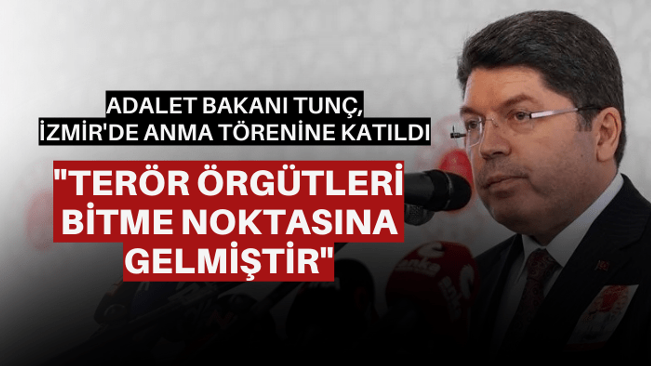 Bakan Tunç, İzmir'de 8 yıl önce gerçekleştirilen terör saldırısında şehit düşen polis memuru Fethi Sekin ile mübaşir Musa Can için İzmir Adalet Sarayı'nda düzenlenen anma törenine katıldı.