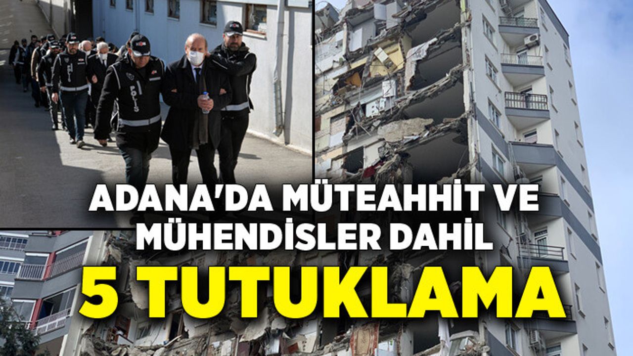 Adana'da, depremde yıkılan 11 binanın yapımında ihmalleri olduğu gerekçesiyle gözaltına alınan 4 şüphelinin emniyetteki sorgusu tamamlandı. Polis ekiplerinin, 5 şüpheliyi daha 'olası kastla yaralama ve ölüme sebep olma' suçundan gözaltına aldığı öğrenildi. Emniyetteki işlemleri tamamlanan toplam 9 şüpheli, adliyeye sevk edildi.