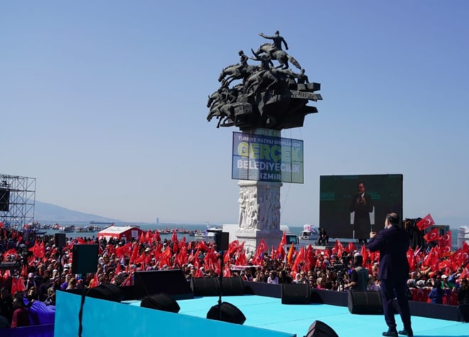 Seçim çalışmaları kapsamında İzmir Gündoğdu Meydanı'nda düzenlenen mitingde konuşan AK Parti İzmir İl Başkanı Bilal Saygılı, "İzmir’i ayağa kaldıracak olan biziz; o güç bizde var" dedi.