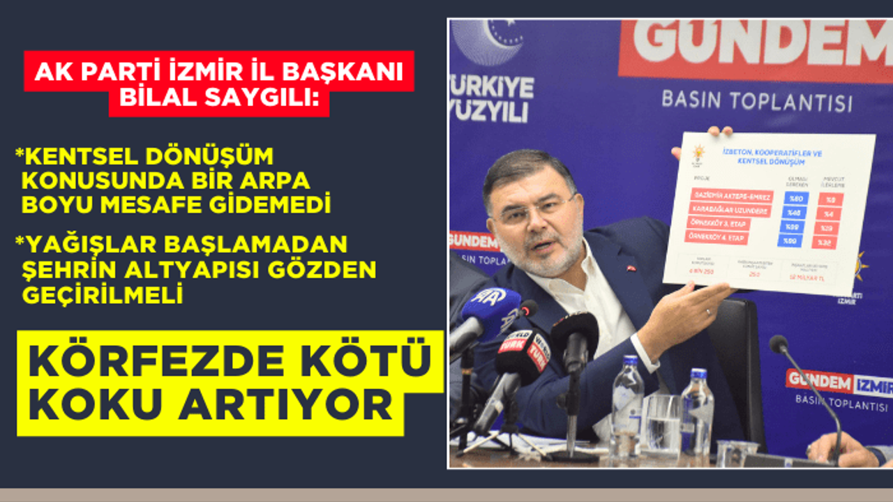Depremin hayati bir konu olduğuna dikkati çeken Saygılı, "Maalesef 25 yıldır İzmir'i yöneten zihniyet kentsel dönüşüm konusunda bir arpa boyu mesafe gidemedi. Hükümetimizin bu alanda çıkardığı yasalarla yerel yönetimlere tanınan geniş yetkileri CHP'nin İzmir'deki siyaset aklı değerlendiremedi. İzmir Büyükşehir Belediyesi verdiği sözleri unuttu, vatandaşlar mağdur oldu. CHP'li İzmir Büyükşehir Belediyesi'ne bağlı İZBETON, garantör olduğu kentsel dönüşüm projesindeki kooperatiflerle sözleşmelerini feshetti. Kentsel dönüşümü rant hesaplarıyla 'kooperatif' görünümlü 'anonim şirketlere' devreden İZBETON, Büyükşehir'e güvenerek sözleşme imzalayan 1550 vatandaşımızı mağdur etti. İZBETON'un çalışmasını yürüttüğü Karabağlar Uzundere'deki şantiye, yüzde 46 seviyesinde olması gerekirken yüzde 4 seviyesinde. Gaziemir Aktepe-Emrez'deki şantiye yüzde 80 seviyesinde olması gerekirken yüzde 9,5 seviyesinde. Karşıyaka Örnekköy 3'üncü etap inşaatı yüzde 99 seviyesinde olması gerekirken yüzde 19 seviyesinde. Örnekköy'deki 4'üncü etap ise yüzde 99 olması gerekirken yüzde 32'de. Toplam konut sayısı 4 bin 250 idi, kaba inşaatı biten 250 tane. Bu acı bir gerçek" ifadelerini kullandı.