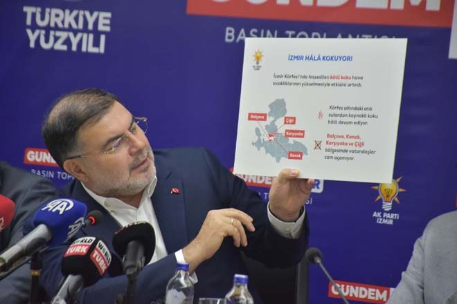"Cemil Tugay; 100 gündür yani göreve geldiğinizden beri Körfez'deki çevre felaketi ve ağır koku problemiyle ilgili hiçbir şey yapmadınız. Tunç Soyer gibi yüzey temizliği mi yapacaksınız, yoksa hakikaten temiz bir Körfez için bir inisiyatif alacak mısınız? Kanalizasyon borularının hala körfeze akması ve yılan hikayesine dönen Çiğli Atık Su Arıtma Tesisi'ndeki 4'üncü fazın 9 yıldır bitirilememiş olması, körfezi her gün daha kirli hale getiriyor. Hava sıcaklıklarının yükselmesiyle İzmir Körfezi'nde hissedilen kötü koku artıyor. Balçova, Konak, Çiğli, Karşıyaka'da ölçümler yaptık. Körfez altındaki atık sulardan kaynaklanan koku devam ediyor. Balçova, Konak, Çiğli ve Karşıyaka bölgesinde vatandaşlar evlerinin camını bile açamıyor. İşe gelince yok, şova gelince çoksunuz."