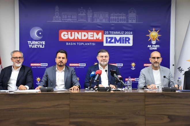 AK Parti İzmir İl Başkanı Bilal Saygılı tarafından AK Parti İzmir İl Başkanlığı'nda, 'Gündem İzmir' başlıklı basın toplantısı gerçekleştirildi. İzmir'deki yerel yönetimler ve gündem konularının paylaşıldığı toplantıya, AK Parti İzmir İl Gençlik Kolları Başkanı Recep Tayyip Taslak, AK Parti İzmir İl Kadın Kolları Başkanı Emel Dalkıran, AK Parti İzmir İl Yönetim Kurulu Üyesi Hasan Çölmekçi, AK Parti İzmir İl Tanıtım ve Medya Başkanı Safa Narlı, AK Parti İzmir İl Yerel Yönetimler Başkanı Tansu Kaya, İzmir Büyükşehir Belediye Meclisi AK Parti Grup Başkanvekili Hakan Yıldız, İzmir Büyükşehir Belediye Meclisi AK Parti Grup Sözcüsü Nail Kocabaş katıldı.