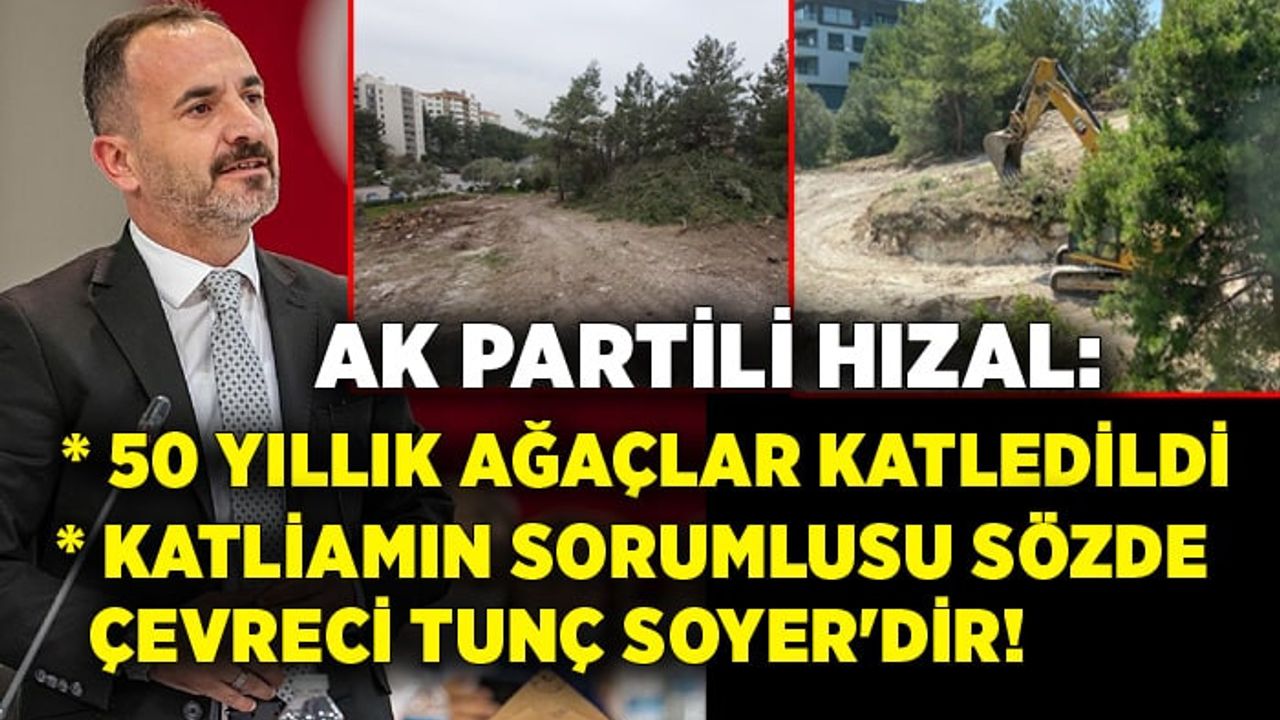 Sosyal medya hesabından ağaçların kesildiği görüntüleri paylaşan, İzmir Büyükşehir Belediye Meclisi AK Parti Grup Başkanvekili Özgür Hızal, şu ifadeler yer verdi, "İzmir Büyükşehir Belediyesine ait Bornova Erzene Mahallesindeki alanda 50 yıllık ağaçlar kesildi ve katledildi! Yaşadığım şehir adına çok üzgünüm. İzmir nefes alanlarını kaybetti. Bu katliamın sorumlusu sözde çevreci Tunç Soyer'dir!"