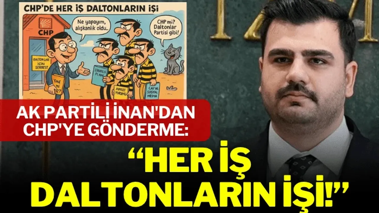 AK Parti Genel Sekreteri ve İzmir Milletvekili Eyyüp Kadir İnan, CHP Genel Başkanı Özgür Özel’in yolsuzluk nedeniyle tutuklanan eski İzmir Büyükşehir Belediye Başkanı Tunç Soyer’i ziyareti sonrası yaptığı açıklamaları eleştirdi. Özel’in açıklamalarına sosyal medya hesabı üzerinden Daltonlar’lı Karikatür ile tepki gösteren İnan, açıklamasında şu ifadelere yer verdi: