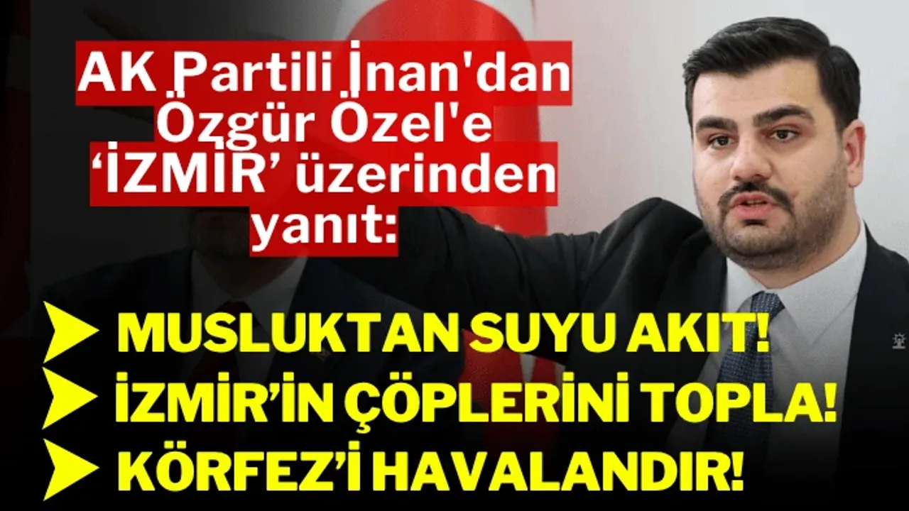 İnan'ın sosyal medyadan paylaşımı şöyle; "Sen önce şu İzmir’in çöplerini topla, Körfez’i havalandır, musluktan suyu akıt… Sonra çıkar ülke hakkında konuşursun; önce bir zahmet kendi belediyelerini kurtar!"