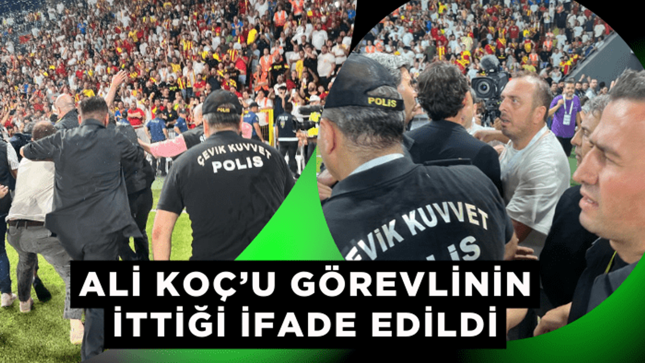 Göztepe - Fenerbahçe karşılaşmasının ikinci yarısında sahaya girip Fenerbahçe tribünlerine giden ardından dönüşte yere düşen Ali Koç’u Fatih Özkan isminde bir görevlinin ittiği ifade edildi.