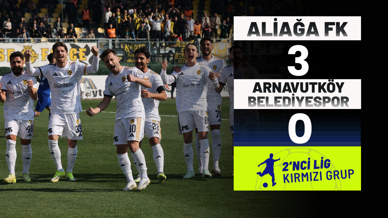 Maça hızlı başlayan Aliağa FK 13’üncü dakikada Muammer Sarıkaya’nın golüyle 1-0 öne geçti. Sarı-siyahlılar 17’nci dakikada penaltıdan Burak Sülayman’ın golüyle farkı ikiye çıkardı: 2-0. Tahir Babaoğlu 38’inci dakikada Aliağa FK’nın üçüncü golünü kaydetti: 3-0. İkinci yarıda sonuç değişmezken, Aliağa FK bu sonuçla 59 puana yükselip zirve umutlarını sürdürdü. Arnavutköy Belediyespor ise 31 puanda kaldı.