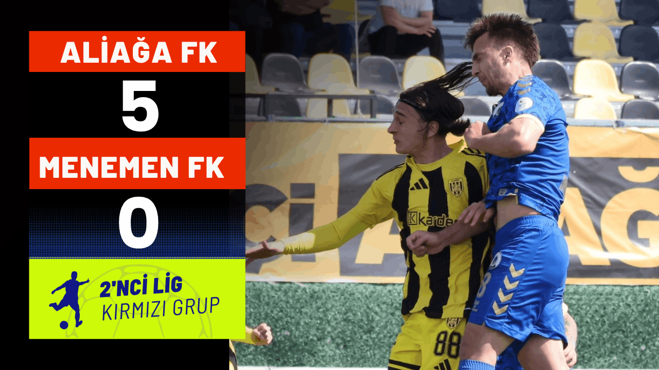 Aliağa Atatürk Stadı'ndaki maçta ev sahibi takımın gollerini 35, 45 ve 54'üncü dakikalarda Tahir Babaoğlu, 71 ve 83'te ise Malik Karaahmet attı. Bu skorla 68 puana ulaşan Aliağa, normal sezonun bitimine 2 hafta kala lider Bursaspor'u 6 puan geriden takibini sürdürdü. İddiası bulunmayan Menemen FK ise 45 puanda kaldı.