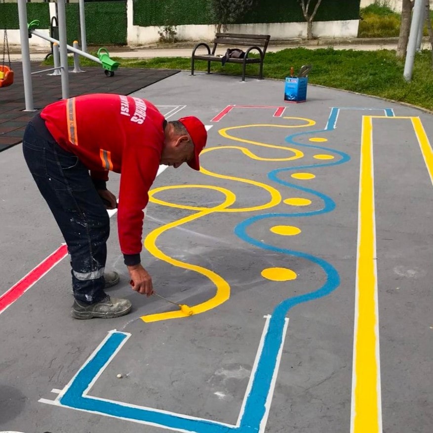 Menderes Belediyesi Park Bahçeler Müdürlüğü ekipleri parklarda çocukların yön, denge koordinasyonlarını güçlendirmek, zihinsel becerilerini geliştirmek ve sosyalleşmelerini sağlamaya yönelik zemin oyunları yapıyor. Boyayarak gerçekleştirilen renkli ve eğlenceli oyunlar çocukların ilgisini çekiyor.