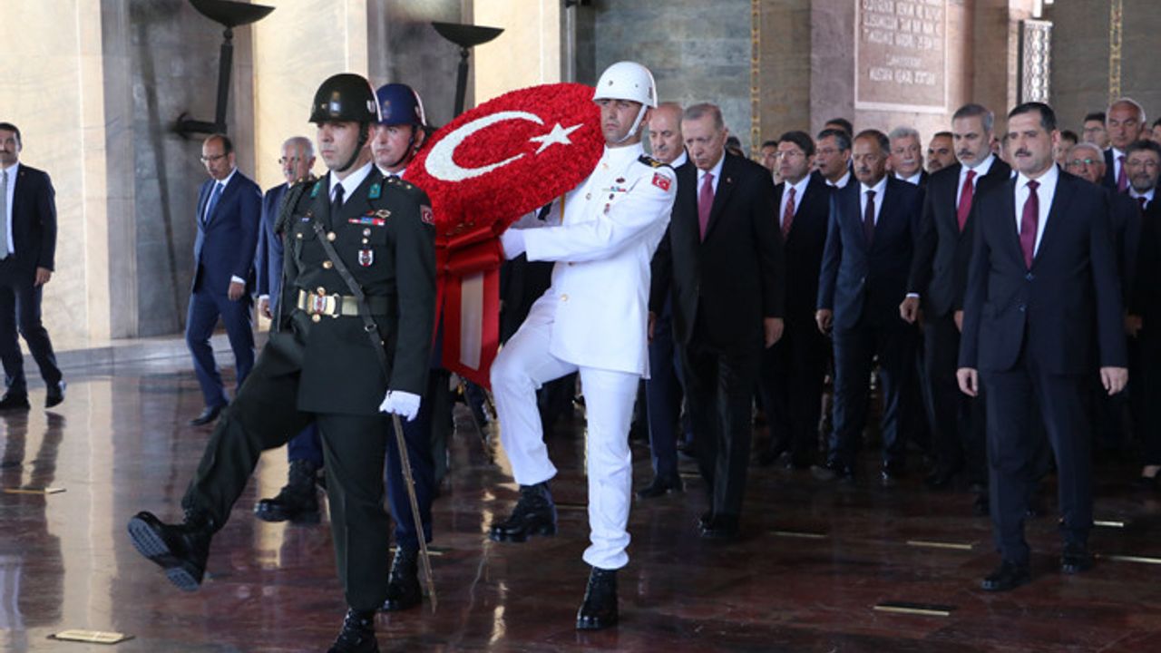 Anıtkabir'de düzenlenen törene; Cumhurbaşkanı Recep Tayyip Erdoğan, TBMM Başkanı Numan Kurtulmuş, Cumhurbaşkanı Yardımcısı Cevdet Yılmaz, CHP Genel Başkanı Kemal Kılıçdaroğlu, MHP Genel Başkanı Devlet Bahçeli, İYİ Parti Genel Başkanı Meral Akşener, bakanlar ve kuvvet komutanları katıldı. Cumhurbaşkanı Erdoğan ve beraberindekiler, Aslanlı Yol'dan yürüyerek, Atatürk'ün mozolesine geldi. Erdoğan'ın, mozoleye çelenk bırakmasının ardından heyet, saygı duruşunda bulunarak İstiklal Marşı'nı okudu. Cumhurbaşkanı Erdoğan ve beraberindekiler, ardından Misak-ı Milli Kulesi'ne geçti. Anıtkabir Özel Defteri'ni imzalayan Erdoğan, şunları kaydetti: