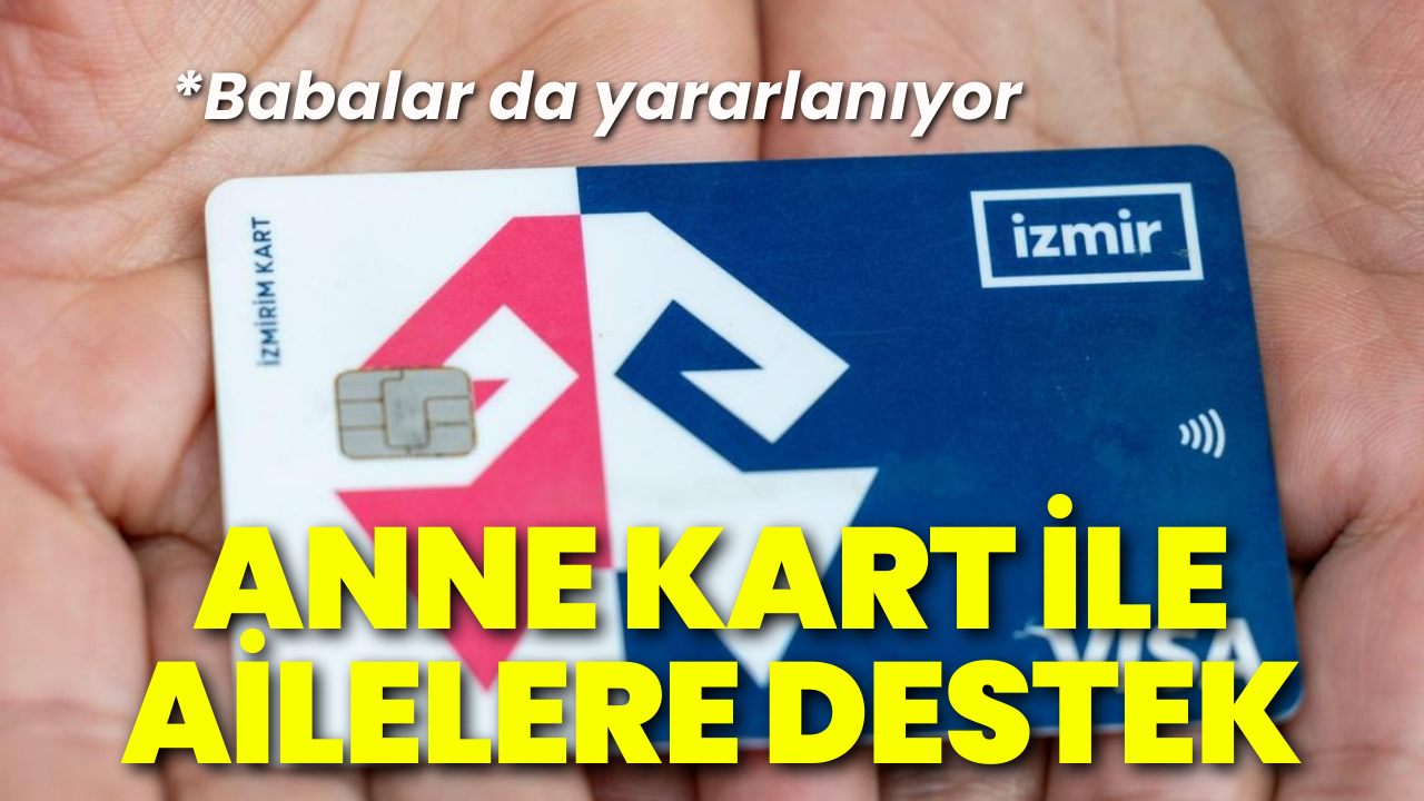 Anne Kart ile 0-4 yaş (0-48 ay) arası çocuğu bulunan annelerin belediyeye bağlı toplu taşıma araçlarından ücretsiz faydalanması sağlanıyor. İzmir Büyükşehir Belediyesi’nin uzman ekipleri tarafından yapılan incelemeler sonucunda yardım alması uygun görülen annelerin kartlarına çocukları yanlarındayken kullanmak üzere aylık 60 kontör yükleniyor. 5 yaş çocuğu olan annelere ve 0-5 yaş çocuğu olan babalara aylık 10 kontör yükleniyor. Uygulamayla, annelerin çocuklarıyla sosyal hayatta daha aktif yer alabilmesi hedefleniyor.