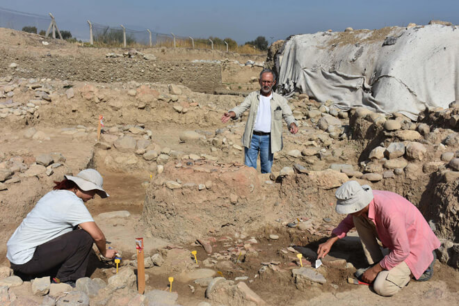Kültür ve Turizm Bakanlığı, İzmir Büyükşehir Belediyesi, Bornova Belediyesi ve Ege Üniversitesi'nin desteğiyle Yeşilova ve Yassıtepe höyüklerindeki yürütülen kazılarda yeni sezon çalışmaları sürüyor. Yeşilova Höyüğü'nde yapılan kazı çalışmalarında, İzmirlilerin köy yaşantısını, zevk, yeme ve içme kültürünü gösteren 8 bin 200 yıl öncesine ait atölye bulundu.