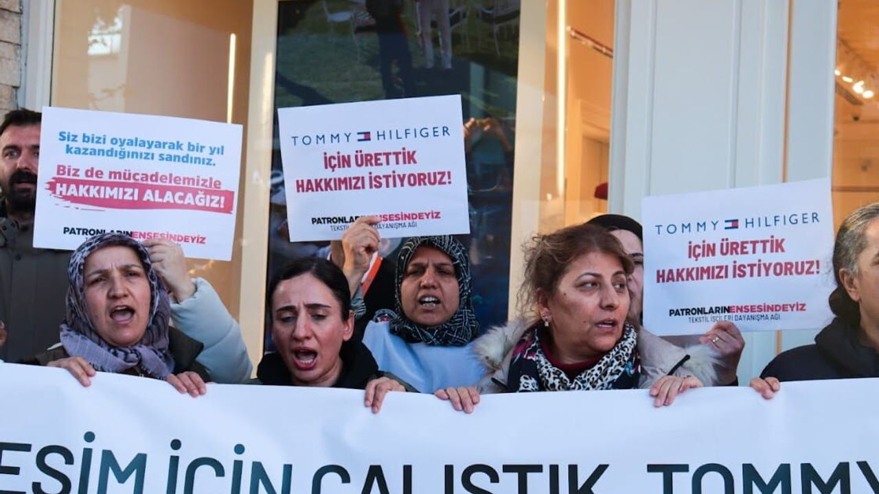Tommy Hilfiger için üretim yapan Atamay Tekstil işçileri, geçtiğimiz günlerde Forum Bornova'da bulunan mağaza önünde eylem yapmış, tüm Tommy Hilfiger mağazalarının ve Yeşim Tekstil'in kendileri için eylem alanı olduğunu vurgulamıştı.