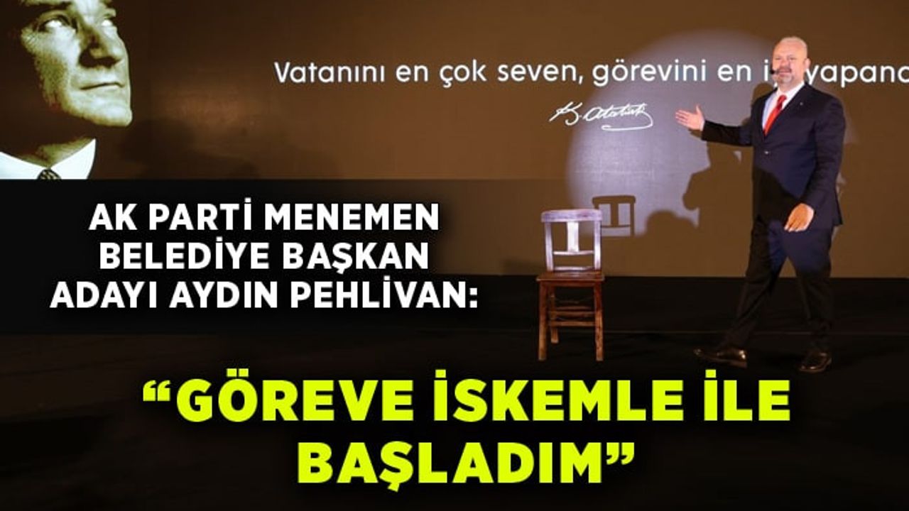 Pehlivan, “Göreve geldiğimizde Menemen Belediyesi, icralar, hacizler ve borçların kıskacında kıpırdayacak durumu olmayan bir belediyeydi. Personelimize 4.5 aylık biriken maaş borcumuz vardı. Yine 14 yıldır ödenmemiş ikramiye alacakları vardı. 22 yıldır ödenmeyen vergi ve SGK borçları duruyordu. Esnafa olan borcun ödenemeyişi, esnafı dahi iflas noktasına getirmişti. Toplam borcu 1.2 milyar TL olan belediyemiz, bir çizme dahi alamayacak durumdaydı. Hatta başkanlık odasının makam koltuğu dahi haczedilmişti arkadaşlar. Karşımızdaki kıraathaneden gidip aldım bu iskemleyi. Diyeceksiniz ki belediyede başka koltuk yok muydu? Elbette vardı ama nasıl bir Menemen devraldığımızı bir gün dahi unutmamak için, Menemen'de koltuğun rahatına ve rehavetine aldanmamak için o günden beri bu gördüğünüz iskemle, benim başkanlık koltuğumdur. Bu arada mutlaka merak edenler olacaktır, diğer koltuğu da geri aldık, depomuzda duruyor.” dedi.