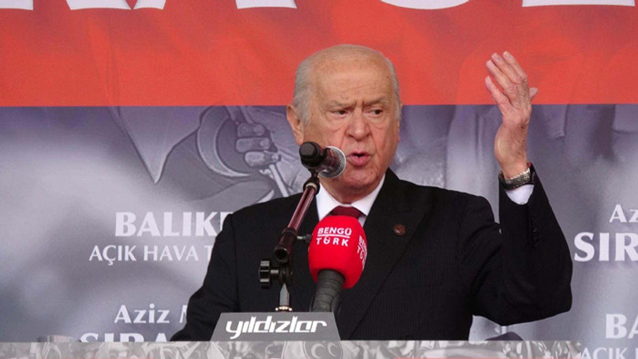 Hedeflerinin Recep Tayyip Erdoğan'ın açık ara farkla tekrar cumhurbaşkanı seçilmesi olduğunu belirten Bahçeli, "Ayrıca Türkiye Büyük Millet Meclisi'nde milletvekili sayısı ve siyasal destek itibarıyla çok güçlü bir Milliyetçi Hareket Partisi grubunun ve Cumhur İttifakı'nın tecessüm ve tecelli etmesidir. Çabamız, çalışmamız, çağrımız, bu hedeflere ulaşmak içindir. Soruyorum sizlere, başarmaya, Cumhurun iradesiyle, Cumhuriyetin ilkeleriyle, tıpkı bir bayrak gibi yükselmeye hazır mısınız? Milliyetçi Hareket Partisi'ni Türkiye Büyük Millet Meclisi'nde oy ve milletvekili sayısı itibarıyla daha da güçlendiriyor musunuz? Cumhur İttifakı'na destek veriyor musunuz? Recep Tayyip Erdoğan'ı tekrar Cumhurbaşkanı seçiyor muyuz? Yıkık değirmende kırk gün eğlenenler, bu 'evet'lerin hükmüyle şaşkına dönecekler. Zillet içinde bocalayanlar bu 'evet'lerle dolup kalacaklar. 14 Mayıs seçimleri Türkiye'nin kaderini tayin edecek. Ya geleceğimiz zillete düşüp heba ve heder olacak ya da Cumhurun cesaret ve dirayetiyle bütün korkular yıkılacak, bütün oyunlar bozulacak. Ya 'Yurdum' diyeceğiz ya da yokluğa mahkum olacağız. Ya istiklal ve istikbal haklarımızdan vazgeçeceğiz ya da haklarımızla sonsuza kadar var olmanın yol haritasını belirleyeceğiz. Mandacılara, mayası ve meşrebi zehirli olanlara ya boyun eğeceğiz ya da lider ülke Türkiye'nin kapısını aralayacağız. Artık başka çare, başka seçenek kalmamıştır. Demokratik hesaplaşmaya sadece 8 gün kalmıştır. Türkiye Cumhuriyeti'ni hak ettiği gelişmişlik düzeyine biz çıkaracağız. Türkiye'yi lider ülke seviyesine biz taşıyacağız. Cumhurbaşkanlığı Hükümet Sistemi'yle kilitleri ya açacağız ya da kıracağız. Üreten, refah sağlayan, herkesin iş ve aş sorunlarını çözmüş bir ekonomiyi, bütün sorunlara neşter vurmayı başarmış, terörün kökünü kazıyıp, bölücülüğü felç etmiş bir siyasi hukuk, dış politikada daha aktif, taviz vermeyen, dünyaya Türkçe bakan, hayatı ve hadiseleri başkent Ankara vizyonuyla kuşatan bir dış politik mimariyi el birliğiyle, güç birliğiyle ve Cumhur İttifakı'yla sağlamış olacağız. İrademiz ve gücümüz büyük Türkiye'dir, Türk Milleti'dir. Güvencemiz Balıkesirli kardeşlerimizdir. Devletimizin egemenlik haklarıyla, milletimizin muhteşem varlığı, bağımsızlığı ve bölünmez bütünlüğüyle kimin sorunu varsa, bizim de onlarla sorunumuz vardır ve alayını birden her cephede karşılamaya hazır olduğumuz da iyi bilinmelidir" dedi.