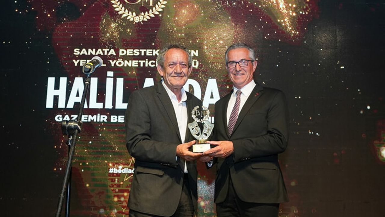 Gaziemir Belediye Başkanı Halil Arda, sanat alanında yaptığı çalışmalarla "Sanata Destek Veren Yerel Yönetici" ödülüne layık görüldü. Başkan Arda’ya ödülünü yazar Haluk Işık takdim etti. Ödül töreninde konuşan Belediye Başkanı Halil Arda, “Bu ödüle layık görüldüğüm için çok mutluyum. Kültür ve sanatın toplumumuzun aydınlanmasına nasıl katkı sağladığını görüyoruz. ‘Kültür ve sanatla gelişen Gaziemir’ sloganıyla yola çıkmıştık. Yaklaşık dört yıldır birçok ünlü sanatçıyı ve amatör tiyatro topluluklarını ilçemizdeki vatandaşlarımızla buluşturduğum için çok mutluyum. Sanata destek vermeye devam edeceğiz. Çok yakın zamanda büyük bir sanat merkezinin temelini atacağız. Cumhuriyetimizin 100. Yılına yakışacak ve 100. Yıl Sanat Merkezi adını taşıyacak merkezimizi İzmir Büyükşehir Belediyesi’nin desteğiyle yapacağız. Tunç Başkanıma desteği için teşekkür ederim. 625 kişilik salonu olacak ve kendisi bir sanat eseri olacak merkezimizi ilçemize kazandıracağız. Sanata desteğe devam. Vazgeçtiğiniz gün, yenildiğiniz gündür. Asla vazgeçmeyeceğiz” diye konuştu.