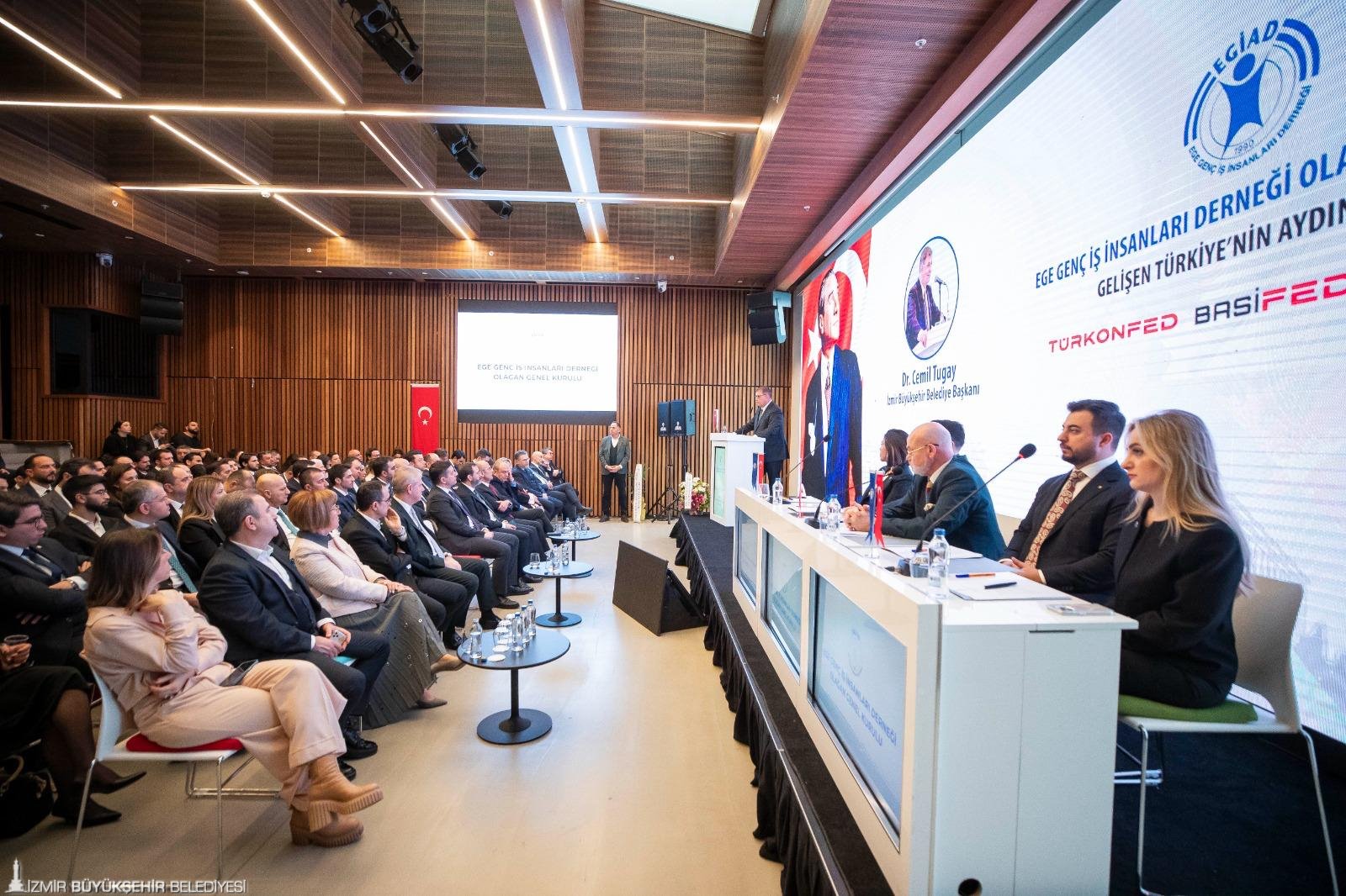 İzmir Büyükşehir Belediye Başkanı Dr. Cemil Tugay, Ege Genç İş İnsanları Derneği (EGİAD) olağan genel kuruluna katıldı. İzQ Girişimcilik ve İnovasyon Merkezi'nde yapılan kurul toplantısında Tugay’ın yanı sıra EGİAD 17. Dönem Yönetim Kurulu Başkanı Alp Avni Yelkenbiçer, İzmir Ticaret Odası Yönetim Kurulu Başkanı Mahmut Özgener, İzmir Büyükşehir Belediyesi Genel Sekreteri Ramazan Tezcan ve iş dünyasının temsilcileri yer aldı.
