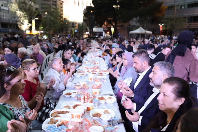Buca Belediyesi, ramazan ayında birlik ve beraberliğin pekiştirilmesi için ilçenin farklı noktalarında iftar programı düzenlemeye devam ediyor. Kadir Gecesi'nde Demokrasi Meydanı'nda kurulan iftar sofrasına Buca Belediye Başkanı Görkem Duman, Cumhuriyet Halk Partisi (CHP) Buca İlçe Başkanı Çağdaş Kaya, belediye meclis üyeleri ve binlerce Bucalı katıldı. Başkan Görkem Duman, vatandaşlara kendi elleriyle iftar yemeği dağıttı.