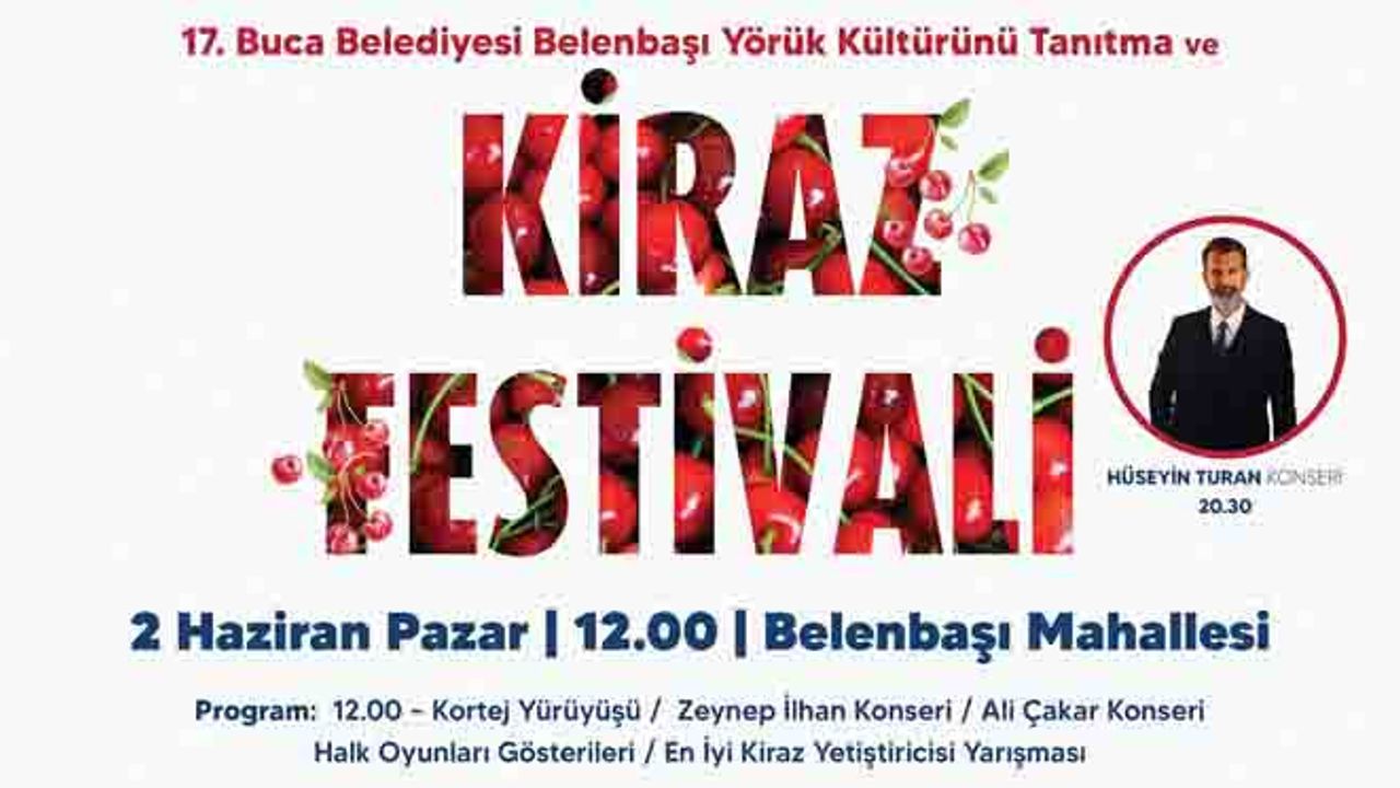 İzmir Büyükşehir Belediyesi'nin katkıları ve Buca Belediyesi ile Belenbaşı Mahalle Muhtarlığı iş birliğiyle düzenlenen Belenbaşı Yörük Kültürünü Tanıtma ve Kiraz Festivali için hazırlıklar tamamlandı. 2 Haziran Pazar günü saat 12.00'de başlayacak festival, köy girişinden festival alanına yapılacak kortej yürüyüşü ile başlayacak. Festivale katılanlar gün boyu sürecek halk oyunları gösterileri, organik pazar, Yörük kültürünü yansıtan el emeği ürünlerin yer alacağı stantlar ve yarışmalarla keyifli saatler geçirecek. Türk halk müziği sanatçıları Ali Çakar ve Zeynep İlhan'ın sahne alacağı festival, ünlü sanatçı Hüseyin Turan konseriyle sona erecek.