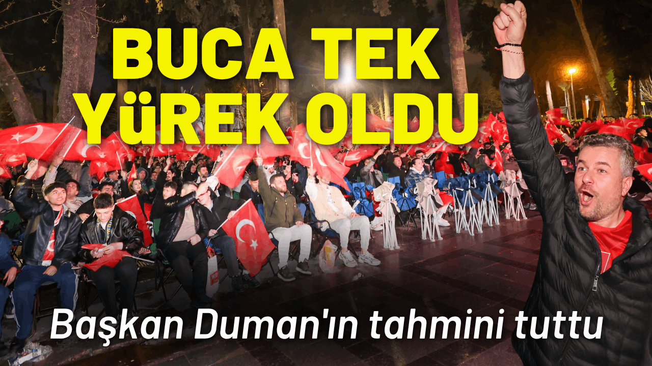 A Milli Takım'ın 2026 FIFA Dünya Kupası yolundaki kritik Kosova play-off final maçında Buca Belediyesi, Hasanağa Bahçesi'ni dev bir tribüne çevirdi. Tek yürek olan binlerce İzmirliyle birlikte maçın heyecanını yaşayan Buca Belediye Başkanı Görkem Duman, her pozisyonda hemşehrilerinin coşkusuna ortak oldu. Vatandaşların Türk bayraklarıyla doldurduğu alanda heyecan doruğa çıkarken geceye Başkan Görkem Duman'ın nokta atışı skor tahmini damga vurdu.