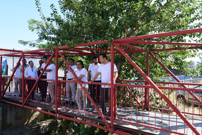 Karacaoğlan, Doğanlar, Işıkkent ve Pınarbaşı'nda incelemelerde bulunan Başkan Eşki ve İZSU Genel Müdürü Gürkan Erdoğan, mahalle muhtarları ve ilgili bürokratların eşlik ettiği gezide, ilçenin kritik noktalarında yaşanabilecek sorunları yerinde tespit etti. Erdoğan'a Işıkkent'teki Arap Deresi üzerinden geçen tarihi köprüde aslına uygun olarak yaptıkları restorasyon çalışmaları hakkında bilgi veren Başkan Eşki, derenin ıslahı için işbirliği içinde de gerekli adımların atılacağını ifade etti.