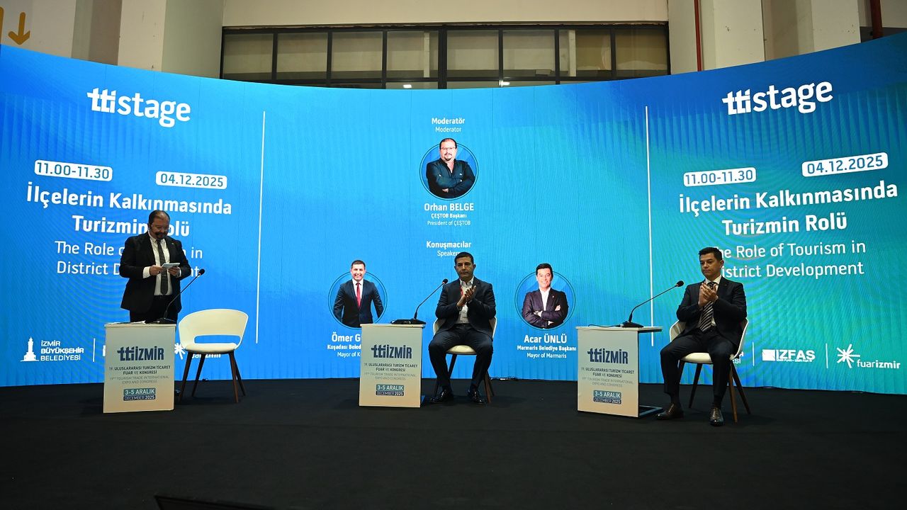 TTI İzmir 19'uncu Uluslararası Turizm Ticaret Fuar ve Kongresi, 54 ülkenin katılımıyla dün başladı. Kültür ve Turizm Bakanlığı himayesinde, İzmir Büyükşehir Belediyesi ev sahipliğinde, İZFAŞ ve TÜRSAB iş birliğiyle düzenlenen fuarı, Kuşadası Belediye Başkanı Ömer Günel de ziyaret edip, 'İlçelerin Kalkınmasında Turizmin Rolü isimli panele katıldı. Panelde, ÇEŞTOB Başkanı Moderatör Orhan Belge'nin sorularını yanıtlayan Başkan Ömer Günel, Kuşadası'nda turizminin 12 aya yayılması için hayata geçirdikleri projeler ile yapılması gerekenleri anlattı.