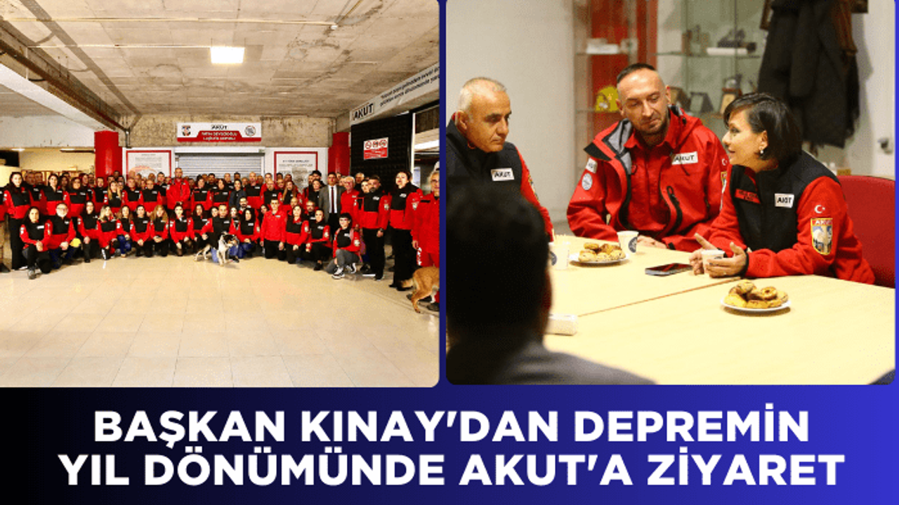 Bozyaka Pazaryeri altındaki AKUT yerleşkesini İzmir Ekip Lideri Ramazan Ergut ve meclis üyesi Ezgi Aktaş ile birlikte gezen Başkan Kınay'a çok sayıda AKUT gönüllüsü de eşlik etti. AKUT'un afetlerde gösterdiği dayanışmanın önemine vurgu yapan Başkan Kınay, kendisinin de gönüllü olarak afet çalışmalarına katıldığını belirtti. Başkan Kınay, "99 depremiyle tanıştım AKUT'la. O günden sonra afetlerin hayatımızın bir gerçeği olduğunu gördüm. Ancak biz çoğu zaman acıları unutarak hayatta kalıyoruz. Unutmamak ve afetlere hazırlıklı olmak zorundayız" dedi.