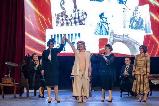 Konak'taki Elhamra Sahnesi'nde gerçekleşen görkemli gecede, Başkan Mutlu'nun yanı sıra aralarında Karabağlar Belediye Başkanı Helil Kınay, İzmir Kent Konseyi Başkanı Nilay Kökkılınç, İzmir Kent Konseyi Kadın Meclisi Başkanı Canan Aydemir Özkara, Tülay Aktaş Gönüllü Kuruluşlar Güç Birliği Başkanı Fatoş Dayıoğlu, İzmir Kadın Kuruluşları Birliği Başkanı Gülsen Özkan, Uluslararası Lions Dernekleri 118 R Yönetim Çevresi Genel Yönetmeni Lion Prof. Dr. Buket Aksu'nun da bulunduğu 24 kadın, ilkleri başaran kadınları sahnede canlandırdı. Araştırmacı yazar İlknur Güntürkün Kalıpçı'nın geçmişe zaman yolculuğu yaptıran sunumu eşliğinde sahneye çıkan İzmirli kadınların gösterisi duygu dolu anların yaşanmasına da neden oldu.