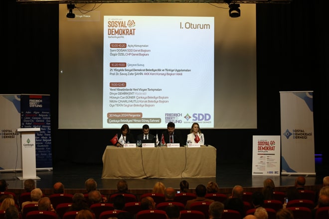 Konak Belediye Başkanı Nilüfer Çınarlı Mutlu, Sosyal Demokrasi Derneği’nin (SDD) Ankara’da düzenlediği “21. Yüzyılda Yeni Sosyal Demokrat Belediyecilik” başlıklı panele konuşmacı olarak katıldı. Çankaya Belediyesi Yılmaz Güney Sahnesi’nde gerçekleşen ve açılış konuşmalarını Cumhuriyet Halk Partisi (CHP) Genel Başkanı Özgür Özel ve SDD Genel Başkanı Sami Doğan’ın yaptığı panel iki oturum şeklinde gerçekleşti. Dinçer Demirkent’in moderatörlüğünü yaptığı “Yerel Yönetimlerde Yeni Vizyon Tartışmaları” başlıklı panelde, Konak Belediye Başkanı Nilüfer Çınarlı Mutlu’nun yanı sıra Çankaya Belediye Başkanı Hüseyin Can Güner ve Seyhan Belediye Başkanı Oya Tekin konuşma yaptı.