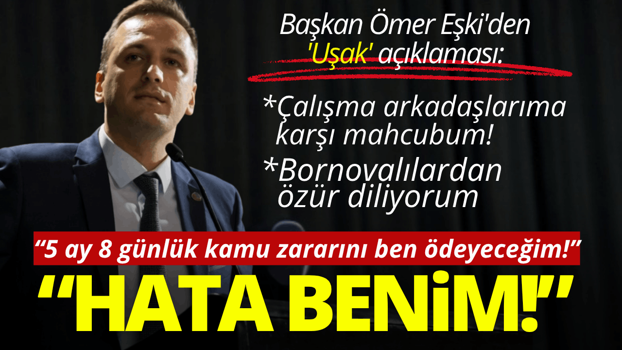 Bornova Belediye Başkanı olarak bu münferit hatanın sorumluluğunu kabul ediyorum. Kamu kaynaklarını korumaya olan bağlılığımız nedeniyle bu kişinin belediyemizde çalıştığı 5 ay 8 günlük süre kapsamında doğacak tüm kamu zararı Bornova Belediyesine tarafımızca iade edilecektir.