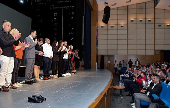 Bayraklı Belediye Başkanı İrfan Önal, CHP Bayraklı İlçe Başkanlığı'nca Tepekule Kongre Merkezi'nde sahnelenen Hasret Gültekin Türkü Müzikali'ni, Yeter Gültekin ve vatandaşlarla birlikte seyretti.