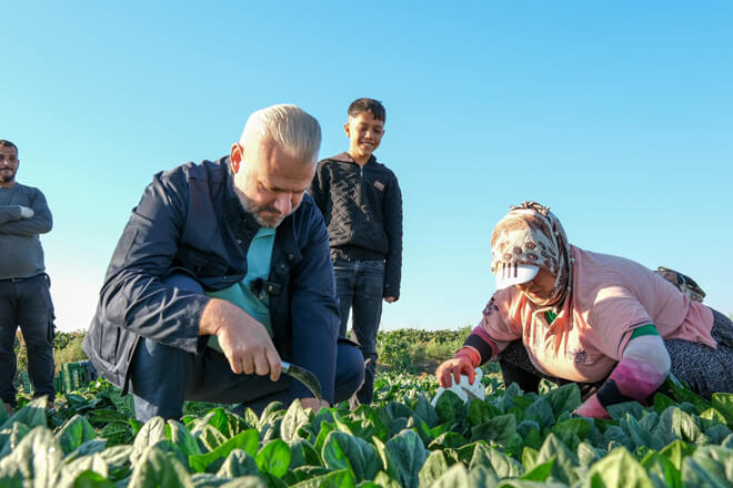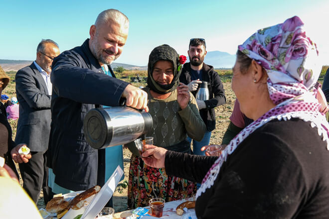 Menemen Belediye Başkan Vekili Aydın Pehlivan, 15 Ekim Dünya Kadın Çiftçiler Günü nedeniyle güne tarlalarda çalışan kadınları ziyaret ederek başladı. Üretici kadınlara gül verip, çay ikram eden Başkan Vekili Pehlivan, "Menemen'in verimli toprakları sizlerin emeğiyle buluştukça, sofralarımız anlam kazanıyor" dedi.