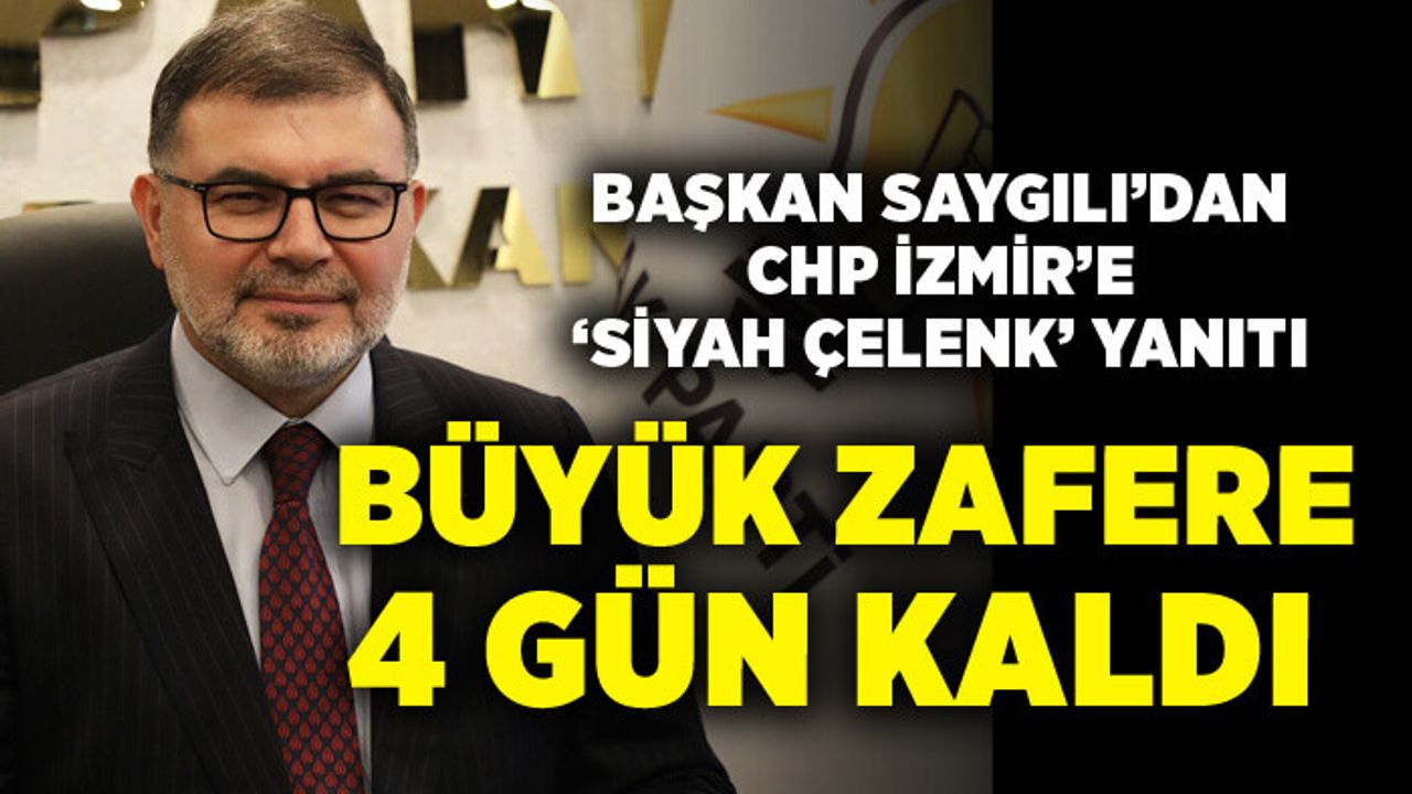 Sosyal medya hesabından cevap veren AK Parti İzmir İl Başkanı Bilal Saygılı, şu ifadelere yer verdi, ‘’Siyah çelenkleriyle tam kadro İl Başkanlığımıza kadar teşrif eden CHP İzmir, düzmece protestosuyla ses getiremeyecek. Genel Başkanları gibi son düzlüğe girerken bir gerilim filminin aktörü gibi davranıyorlar ama yazıp oynadıkları küçük piyeslerde kayboluyorlar. Büyük zafere 4 gün kaldı. Haklı haksız, hak eden hak etmeyen beĺli olacak. Telaşa, agresif davranışa mahal yok! Tepki göstermek demokratik hak ama kapılara dayanmak dışında bin bir yolu var. Sakin. 28 Mayıs sandığında görüşmek üzere...’’