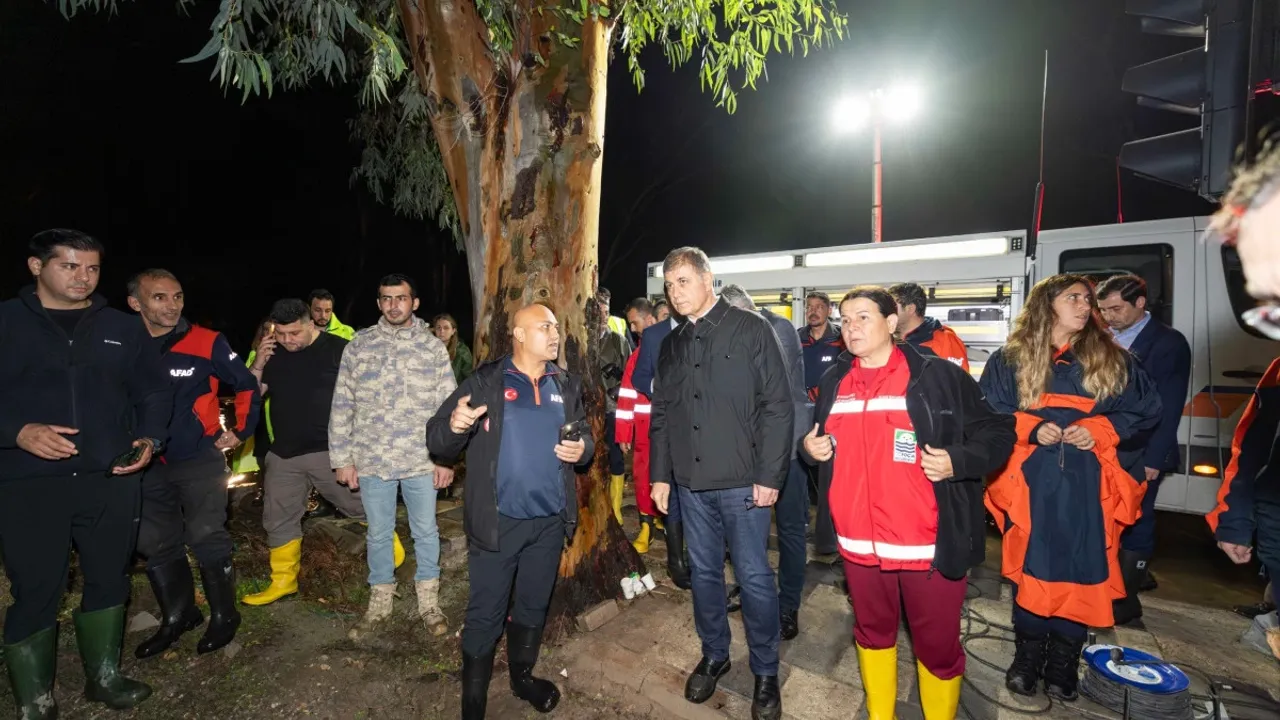 İzmir Büyükşehir Belediye Başkanı Dr. Cemil Tugay, sağanak yağışın yaşamı olumsuz etkilediği Foça’da İZSU ve itfaiye ekipleri başta olmak üzere İzmir Büyükşehir Belediyesi birimlerinin çalışmalarını inceledi. Başkan Tugay, mağduriyet yaşayan esnaf ve yurttaşları ziyaret ederek eksikliklerin giderilmesi için talimat verdi. Büyükşehir ekipleri, ilçede 197 araç ve 350 personelle yaşamı normale döndürmek için var gücüyle çalışıyor.