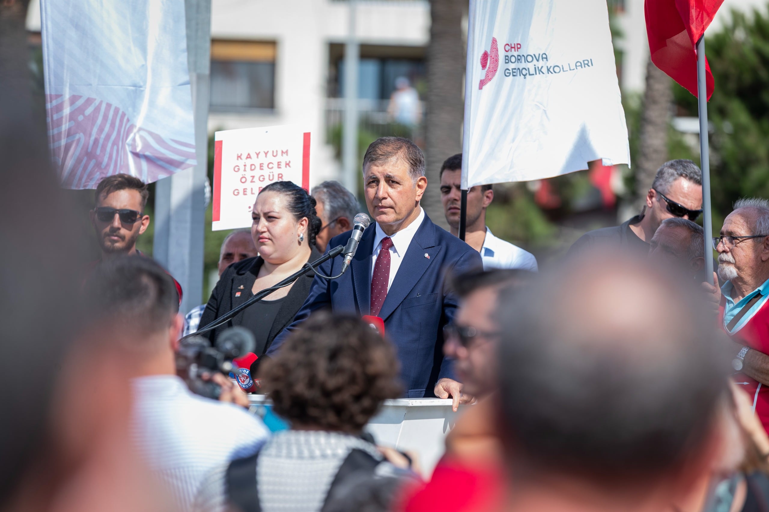 Eşitlik ve adalet için mücadele edeceklerini söyleyen Başkan Tugay, “Güzel bir günde bir aradayız. Dünyanın tarihine geçmiş en köklü en eski partilerden birisi olarak hem şehrimizin kurtuluş gününde hem de kuruluş gününde bir aradayız. Ceketimi çıkaracaktım ama örgütüme karşı saygısızlık olmasın diye çıkarmadım. Sıcak da olsa aynı dik duruşa devam edelim dedim. Bizi parti olarak çok yordular. Nice seçimlerde sokak sokak gezdik bir şeyler anlatmaya çalıştık. Meydanlarda, mitinglerdeydik. Sandık başındaydık. Bu milletin önüne sandık koyduklarında o gün Türkiye’de yeni bir dönemi başlatmanın gururunu yaşamak istiyoruz. Bu hedefe inanmayanların Cumhuriyet Halk Partisi’nde kalmaması gerekiyor. Tıpkı 26 Ağustos’ta başlayan Büyük Taarruz’da her bir asker gibi, tarihin eşi benzeri görülmemiş hızıyla Kocatepe’den buraya 9 günde gelen o büyük insanlar gibi inanacağız ve ona göre mücadele edeceğiz. Mutlaka kazanacağız, kaybetmek gibi bir seçenek yok. Kim için kazanacağız? Haksızlığa uğrayan, adaletsizliğe uğrayan herkes için kazanacağız. Yaşamda elinden eşitliği ve hakkı alınmış herkes için, evi olmayan, karnı doymayan, okul masrafını karşılayamayan, diploması olduğu halde iş bulamayanlar için, emeğinin karşılığın alamayan herkes için kazanacağız. Birilerini değil, ülkesini zengin etmek için çalışanlar için kazanacağız” diye konuştu.