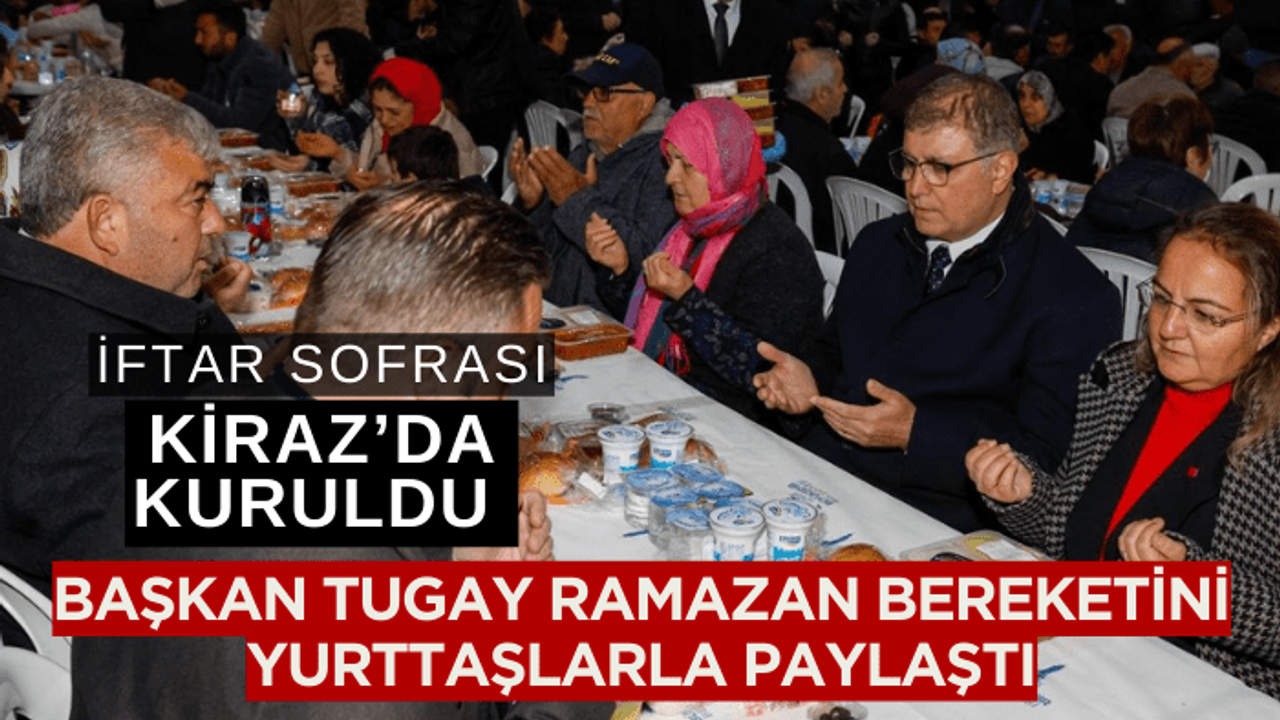 Kiraz Belediye Başkanı Nasuh Coşkun ise, “Birlik ve beraberliğimizi güçlendiren iftarda sizlerle birlikteyiz. Göreve geldiğimiz günden beri Kiraz’ı hak ettiği yere kavuşturmak için çalışıyoruz. Önümüze çıkan engelleri Kiraz sevdasıyla aşarak ilerlemeye devam edeceğiz. İftarın bereketini bizlerle paylaşan tüm yurttaşlarımıza teşekkür ediyorum” dedi.