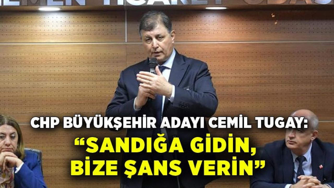 Karşıyaka'da 5 yılı tertemiz geçirdiklerini ifade eden Tugay, “Önemli bir mücadeleyi buraya kadar getirdim. Bu mücadeleyi daha ileriye taşıyacağıma namus ve şeref sözü veriyorum. Yurttaşların sorunlarını duyup, dinleyeceğim. Bunun için güçlü bir ekip kuracağım. İlçe belediye başkanlarımızla takım gibi çalışacağız. Birbirimiz duyacağız. Hiçbir belediye başkanımız 'Sen kendi işine bak. Burası benim alanım' demeyecek. Öyle bir sistem içerisinde çalışacağız. Bu şehirde tarihe geçecek bir belediye yönetimi göreceksiniz. İnsanlarımızın geleceğe umutla bakmasını sağlayacağız. Sizden ricam; bize itimat edin. Destek olun. Ayrıca tüm seçmenleri de ikna edin. Öyle yapın ki bir daha Menemen'in 6 milyarlık arazisi satılmasın. Kimse bizden umudunu kesmesin. Biz vatansever insanlarıyız. Cumhuriyet'i kuran partinin mirasını taşıyan insanlarız. Burasının onların babasının çiftliği olmadığını sık sık hatırlatacağım” dedi.