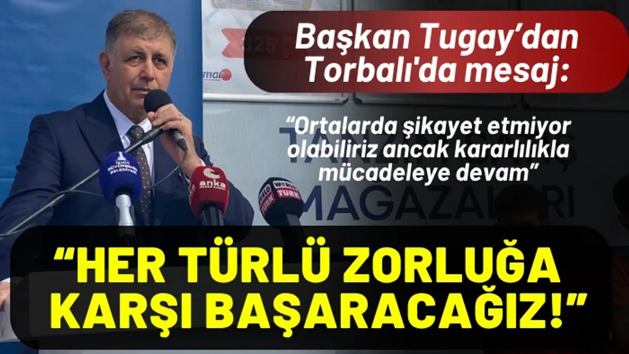 Başkan Tugay, Torbalı’nın artan nüfusu ile gelişen bir ilçe olduğunu belirtirken, “Nüfüsu artan, tarımın ile şehrimizin lokomotifi olan bir ilçemiz. Buranın ürettiği şehrimize ve ülkemize kattığına baktığımız zaman tüm Torbalıya çok daha fazla destek olmalı vergi toplayanlar. Kendimize de bir pay düştüğünün farkındayız. O nedenle torbalı daha yoğun çalışmayı hedeflediğimiz bir ilçe. Yakında atık su artırma tesisi açacağız. İzmir’in en büyük 3’üncü artıma tesisi olacak. Ulaşımla ilgili konuştuğumuz çok konu var. İZTAŞIT’la ilgili de çalışmalarımız var. Torbalı ve Ayrancılar ile buluşturacağız. Çocuklarımızın maruz kaldığı haksızlıklar, okullarına aç gitmeleri ve temiz suya ulaşamamaları vicdanımızı yaralıyor. Ne gerekiyorsa yapacağız. Bazen az konuşuyor olabiliriz, ortalarda şikayet eden insanlardan olmadığımız için sesimizi az duyuruyor olabiliriz, ancak ülkemize halkıma ve ülkemize duyduğumuz sevgi, haksızlıklara karşı mücadelede kararlılığımızı devam edeceğiz. Ancak her türlü zorluğa karşı başaracağız” ifadelerini kullandı.