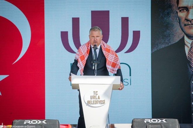 Urla Ziraat Odası Başkanı Muharrem Uslucan, “Urla Bağbozumu Şenlikleri, geçmiş ve geleceğe sahip çıkarken yeniliklere açık olduğumuzu da göstermektedir. Bu süreç sadece bir ürün toplama süreci değil, toplumsal dayanışmanın sembolüdür. Bu sene maalesef buruk bir bağbozumu yaşıyoruz. Çünkü orman yangınlarıyla yeşilimizi, ormanlarımızı, hayvanlarımızı kaybettik. Bizler Urla halkıyla birlikte yanan yerlerde yapılaşmaya izin vermeyeceğiz. Yeniden yeşil alanı ilçemize kazandıracağız” diye konuştu.