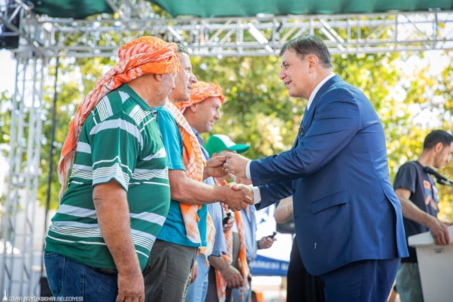 Türkiye’deki bağların 3’te 1’inin Ege Bölgesi’nde olduğunu belirten Başkan Dr. Cemil Tugay, “Bu toprakların yaşayanları, sahipleri, kamu yöneticileri olarak sahip olduğumuz bu hazinenin farkında olmalıyız. Bugün bağların toplandığı, üzümlerin kesildiği bir gün. Dünyanın en güzel üzümlerinin, incirlerinin, zeytinlerinin yetiştiği topraklardayız. Böylesine değerli bir mirası devralmışken yanlış tarım politikalarıyla verimliliği kaybediyoruz. Plansız üretimle çiftçilerimizin emeğinin karşılığını alamadığı hasatlarla karşılaşıyoruz. İklim krizinin sebep olduğu kuraklığı yaşıyoruz. Bu sorunlara karşı her bir vatandaşımız bilinç sahibi olmalı ve üzerine düşeni yapmalı. Önümüzdeki yıllar, bu sorunlarla ilgili etkili mücadele yaptığımız yıllar olacak. Hepinizi bu açıdan göreve çağırıyorum. Çiftçimizin bizim için önemli olduğunu hatırlatmamız lazım. Urla, binlerce yıllık tarım geleneğiyle marka olmuş bir yer. Gastronomi merkezi olması nedeniyle Urla hepimizin gururu olmaya devam ediyor. Ama şunu unutmamamız gerekiyor; Urla’yı geliştirmek demek Urla’yı korumak demektir” ifadelerini kullandı.
