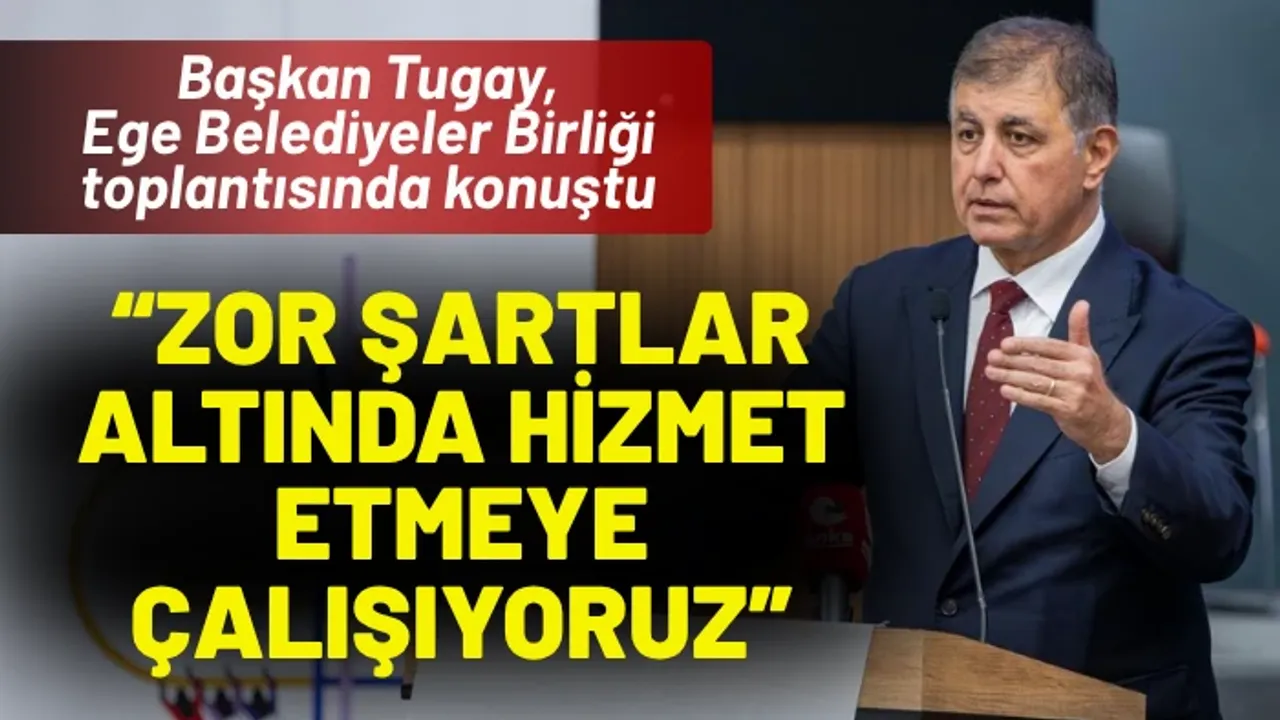 İzmir Büyükşehir Belediye Başkanı Dr. Cemil Tugay, İzmir'in ev sahipliğinde düzenlenen Ege Belediyeler Birliği'nin olağan meclis toplantısına katıldı. Ege Belediyeler Birliği Başkanı ve Denizli Büyükşehir Belediye Başkanı Bülent Nuri Çavuşoğlu yönetiminde Kültürpark 4 No’lu Hol Meclis Salonu’nda yapılan toplantı, merhum Manisa Büyükşehir Belediye Başkanı Ferdi Zeyrek'i anarak başladı. Olağan meclis toplantısına üye belediyelerin başkanları ile temsilcileri katıldı.