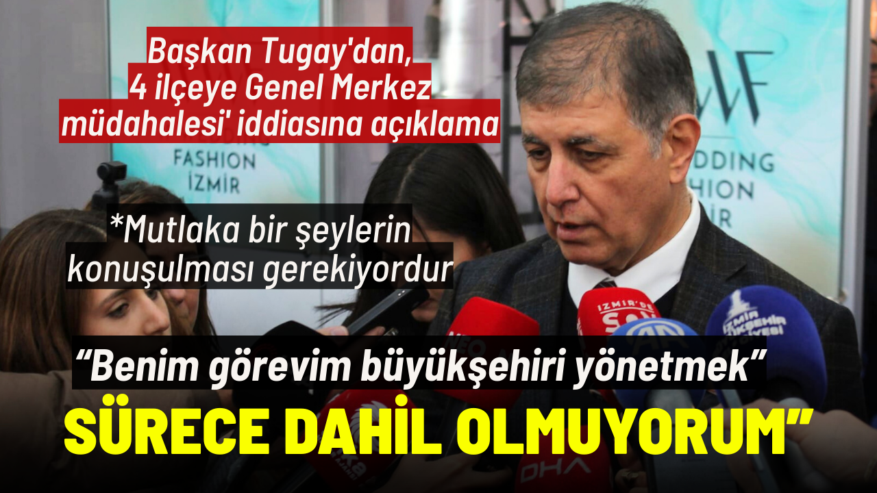 Tugay, “Genel merkezden bana bir bilgi yok. Benim işim büyükşehir belediyesini idare etmek. İlçe belediye başkanlarımızla sıkça konuşuyoruz, iyi bir diyaloğumuz var. Bizim amacımız hizmet üretimini sağlamak. Partiyle ilgili bir sorun, disiplinle ilgili bir konu varsa o il başkanlığının konusu. Ben bu konulara dahil olmuyorum, benim görevim değil. Mutlaka bir şeylerin konuşulması gerekiyordur ancak bu genel merkezin organizasyonunda olacağı bir şey. Benim görüşmeyle ilgili bir bilgim yok, dahil de olmuyorum” dedi.