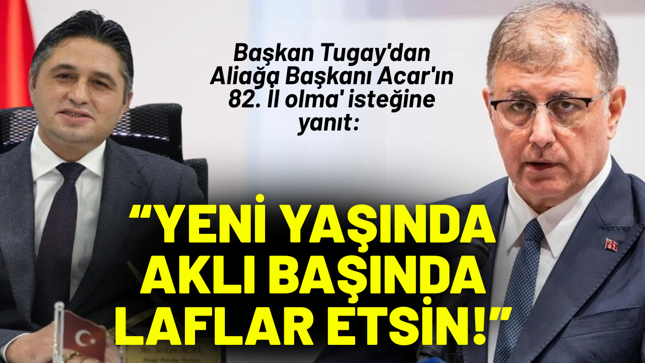 Aliağalı ve Bergamalı yurttaşlarımızın iradesine saygı duyacağını belirten Tugay, "Aliağa Belediye Başkanına doğum günü hediyesi olarak değil, o bölgenin hayrına olacaksa “hayır” demem. İzmirli olmak, İzmir’in ilçesi olmak bir itibar meselesidir; kolay sahip olunmaz. Çok sayıda insan İzmirli olmak istiyor. Biz Aliağa ve Bakırçay bölgesindeki vatandaşlarımıza hizmet ediyoruz. Yeni bir düzen oturtmak kolay değil. Aliağa Belediye Başkanı hayalperestçe davranıyor. Ben de doğum gününü kutluyorum; yeni yaşında daha aklı başında laflar etmesini diliyorum" ifadelerini kullandı.
