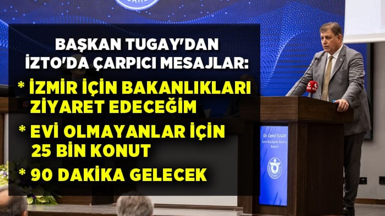 Başkan Tugay, kentin projelerini de aktararak “Ben aslında sadece Cemil Tugay değilim. Yüzde 1 Cemil Tugay’ım, yüzde 99 belediye başkanıyım. Bu kimliğimle her birinizin, bu şehirde yaşayan herkesin, bu şehirdeki canlı, cansız tüm varlıkların hizmetinde olan, o sorumluluğu hisseden birisiyim. İsterim ki ortak bir noktada buluşmak üzere bir yol yürüyelim. İzmir Ticaret Odası’nın İzmir halkı için yaptığı her şey için teşekkür ediyorum” dedi.