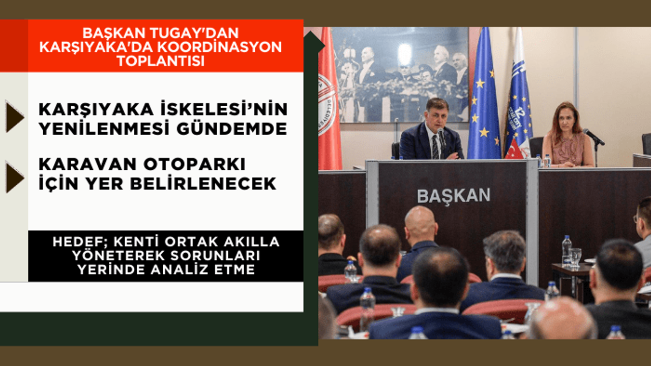 İzmir Büyükşehir Belediye Başkanı Dr. Cemil Tugay’ın, kenti ortak akılla yöneterek sorunları yerinde analiz etme hedefiyle İzmir’in 30 ilçesinde başlattığı koordinasyon toplantıları 5 yıl belediye başkanı olarak görev yaptığı Karşıyaka ile devam etti. Karşıyaka Belediyesi Meclis Salonu’nda yapılan toplantıya Dr. Cemil Tugay’ın yanı sıra Karşıyaka Belediye Başkanı B. Yıldız Ünsal, İzmir Büyükşehir Belediyesi Genel Sekreteri Barış Karcı, Genel Sekreter Yardımcıları Zeki Yıldırım, Çağatay Güç, Ertuğrul Tugay, Prof. Dr. Pınar Okyay, Şükran Nurlu, İZSU Genel Müdürü Gürkan Erdoğan, ESHOT Genel Müdürü Turgay Bozoğlu ve ilçe belediyesi bürokratları katıldı.