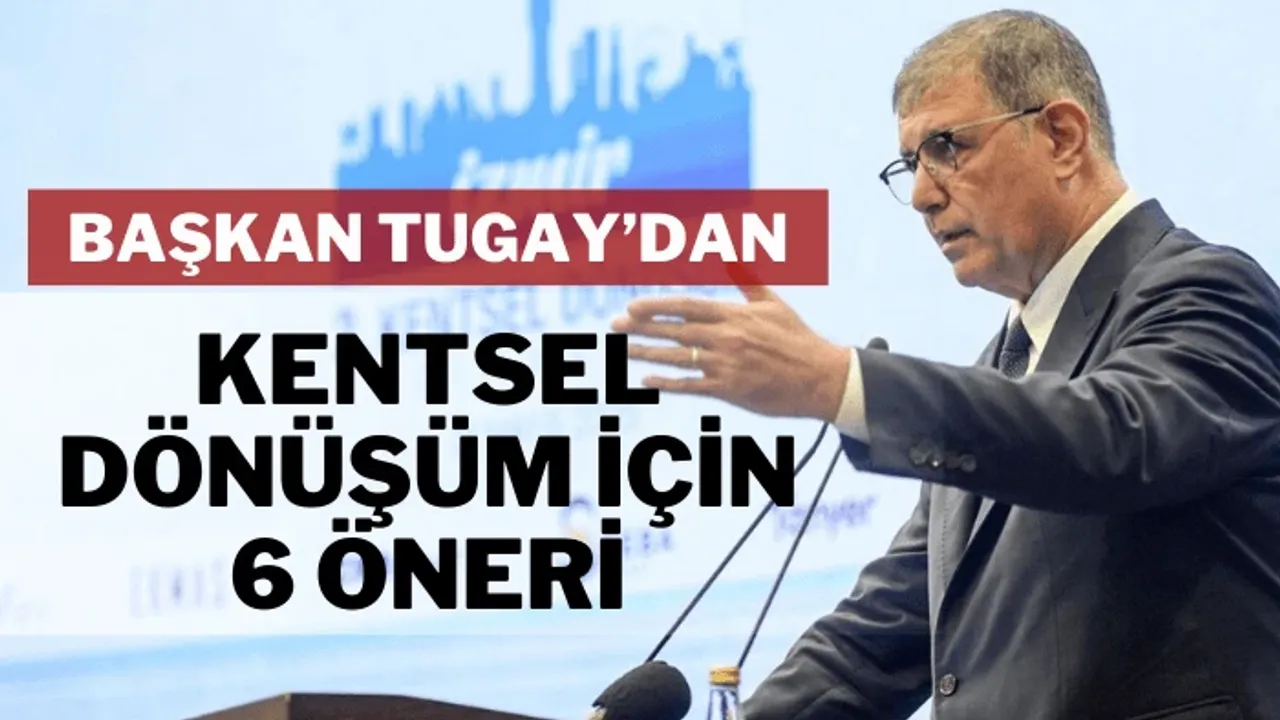 Başkan Tugay, kentsel dönüşüm sürecinin daha hızlı ve sağlıklı ilerlemesi için de 6 çözüm önerisinde bulundu.