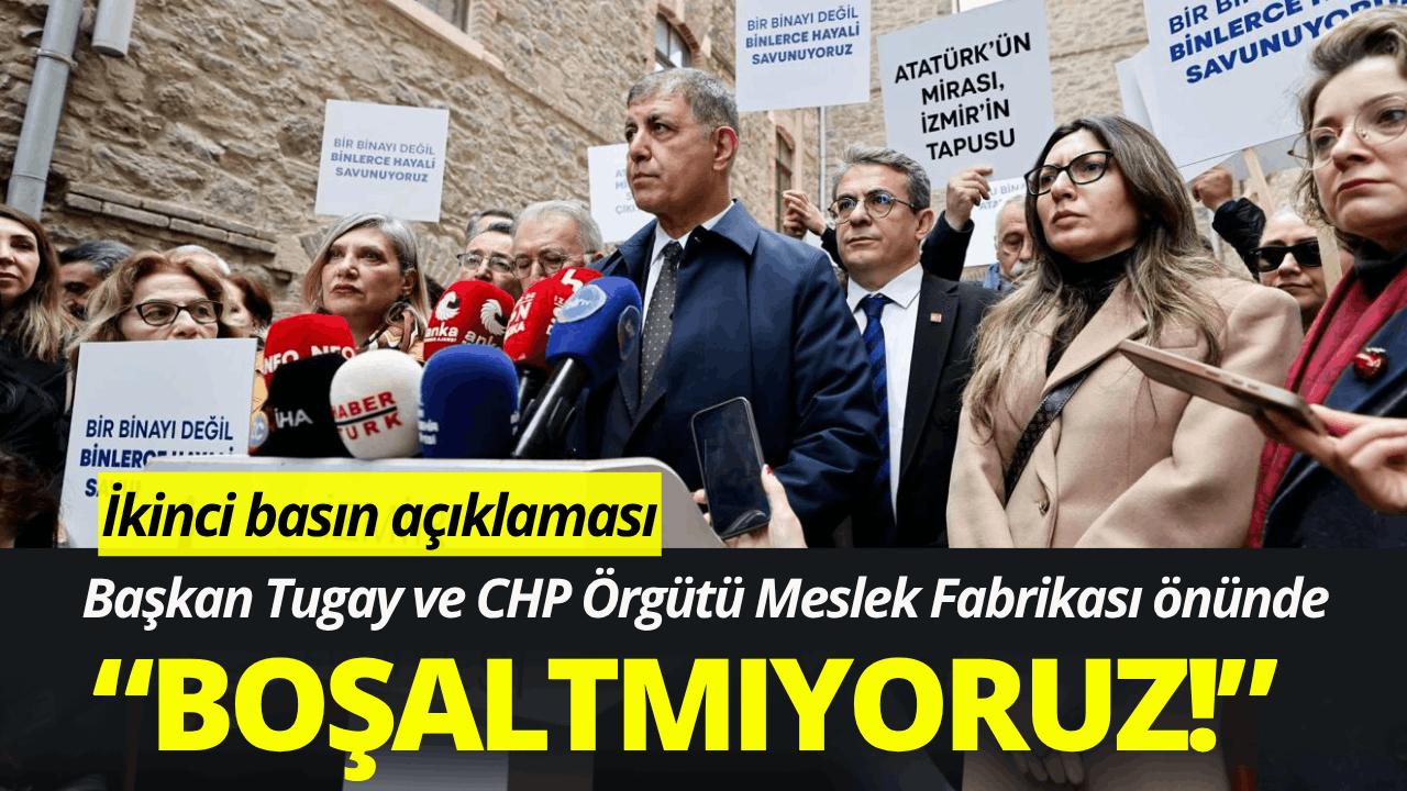 Sabah erken saatlerde Meslek Fabrikası binasına giden İzmir Büyükşehir Belediye Tugay, burada yaptığı açıklamada “Bizim derdimiz nettir, duruşumuz açıktır. Bu konuda haklıyız ve bu haklılığımızı defalarca kamuoyuyla paylaştık. Ben burada olmak zorundayım. Bu mesele çözülene kadar da buradan ayrılmak istemiyorum. Çünkü bu yalnızca bir bina meselesi değil; bu, hukukun, kamu hakkının ve İzmir’in iradesinin korunması meselesidir” dedi.